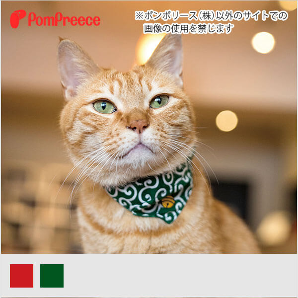 頸帶配上印有大熱唐草花紋的圍巾,圍巾繡上鈴鐺圖案,可愛又充滿日本風情!