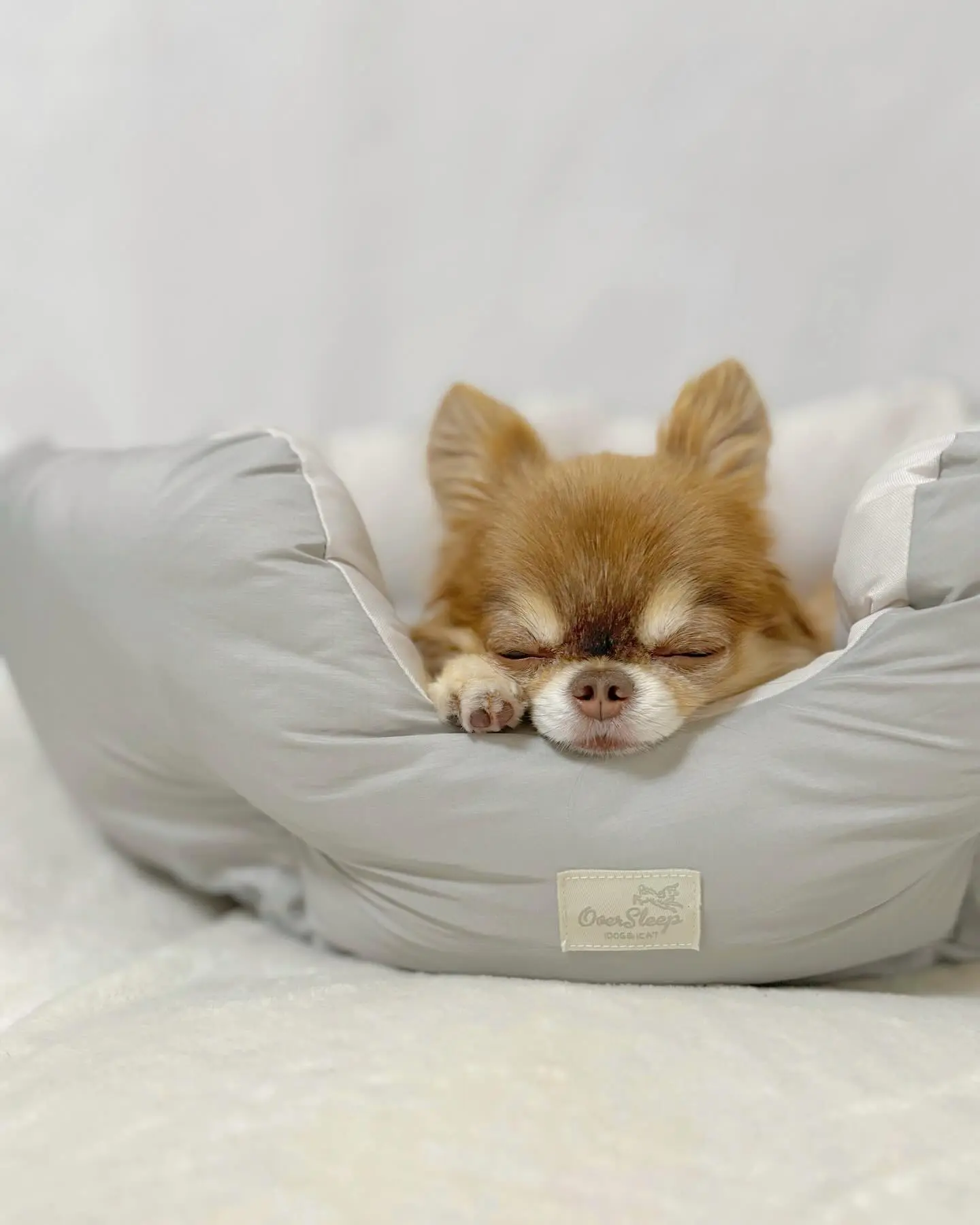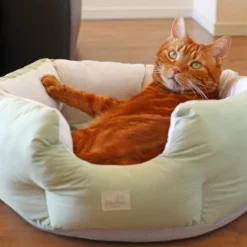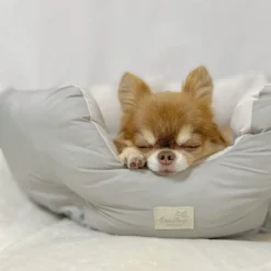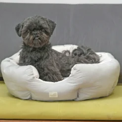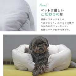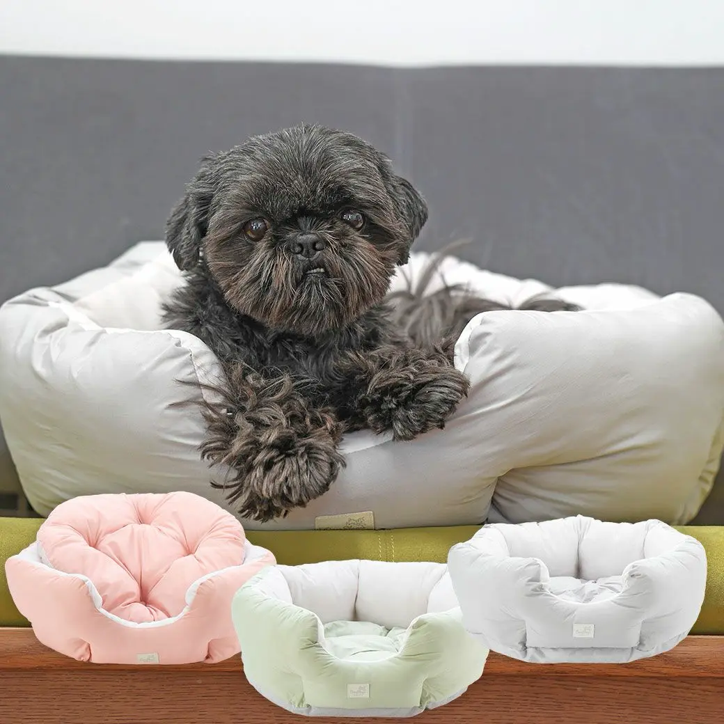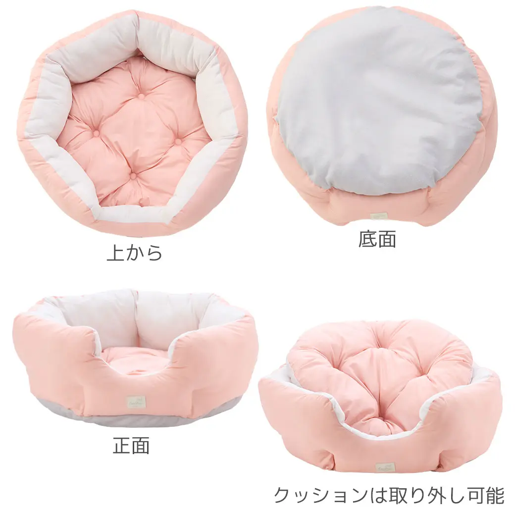 圓形寵物床,完全環繞牆壁。內側(灰色材質)採用觸感涼爽的布料,並經過抗菌除臭處理,進一步提升舒適度。