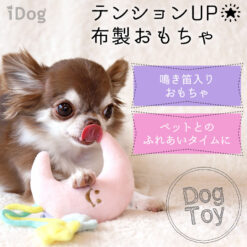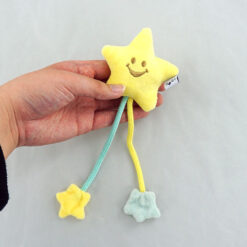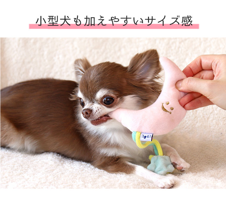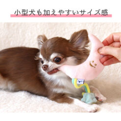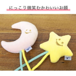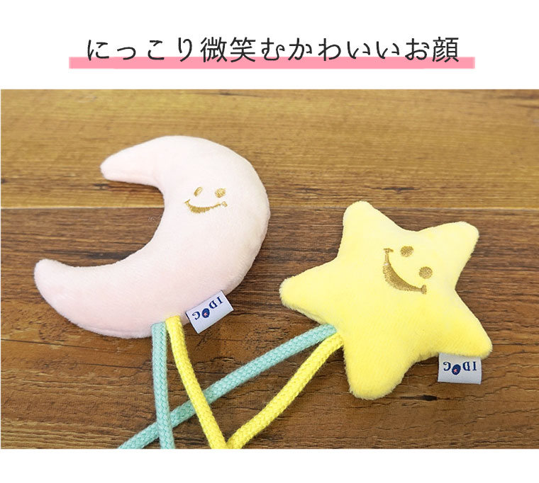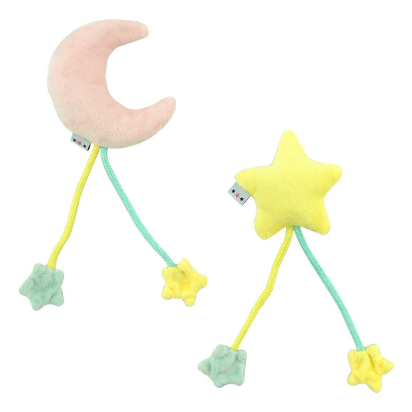 微笑著的月亮形和星星形玩具,拖著用繩子連繫的小星星,狗狗愛不釋手。