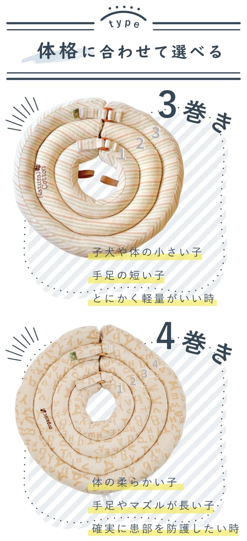 此款式有4圈和3圈設計,4圈給正常身體比例使用,3圈款式特別給腳短的貓狗,令他們戴上後也可活動自如。