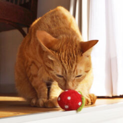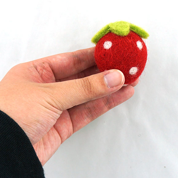可愛的草莓形毛氈玩具,貓貓抱著草莓的樣子既可愛又治癒。