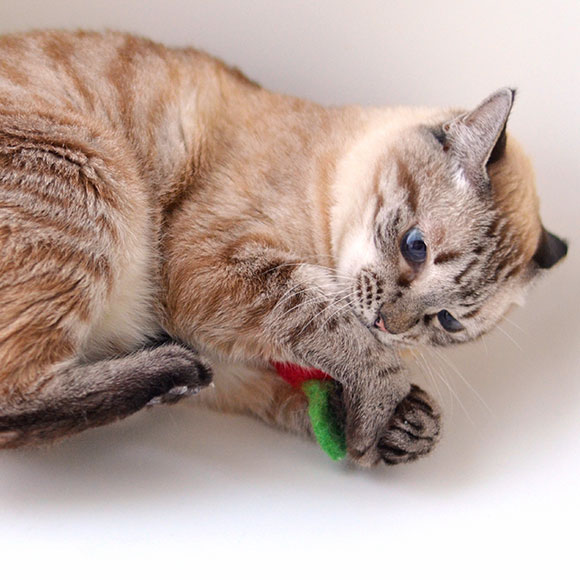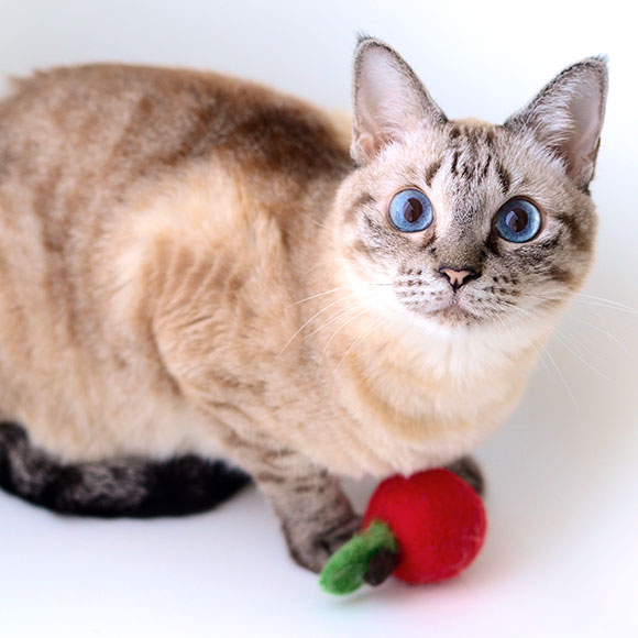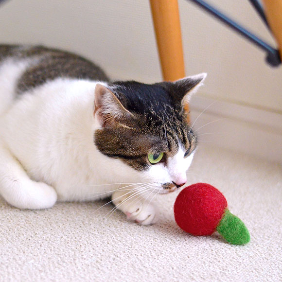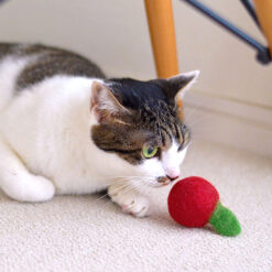 可愛的蘋果形毛氈玩具,貓貓抱著蘋果的樣子既可愛又治癒。