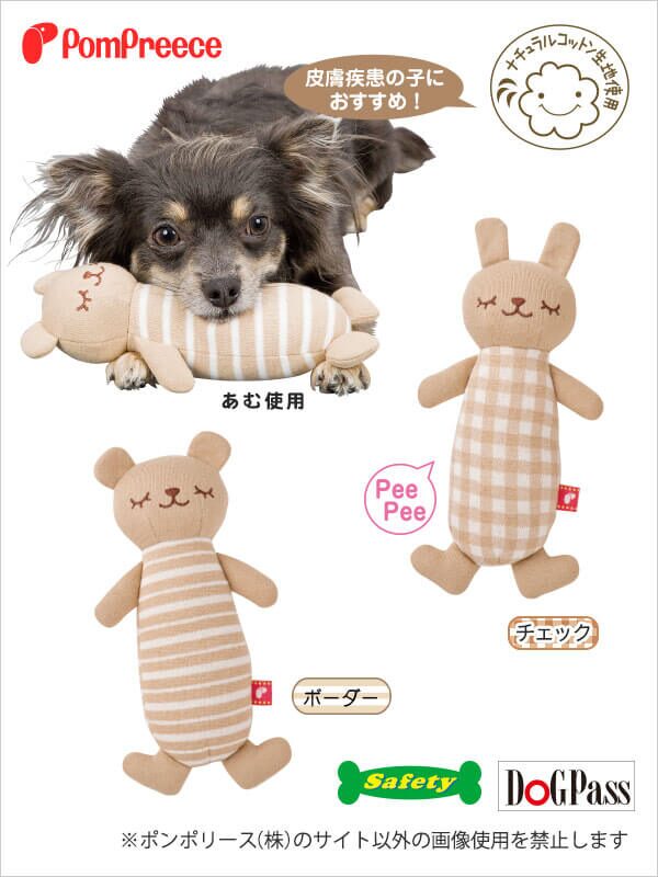 可愛的動物造型玩具,使用有機棉作面料,質地柔軟,幼犬也非常合適,長條形也適合作枕頭之用