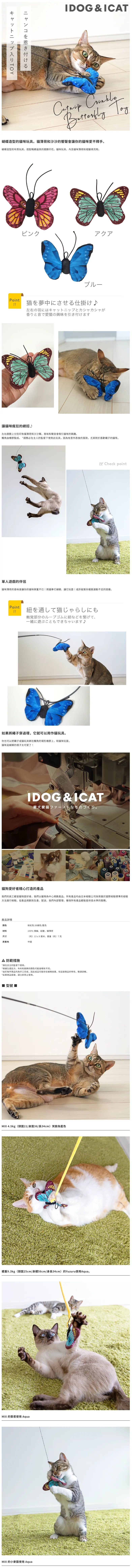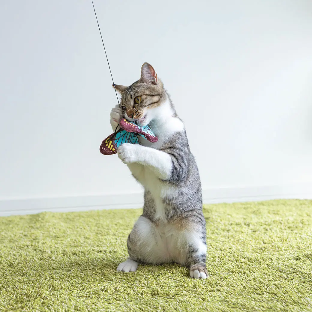 布質玩具搭配逼真的翅膀印花,內含貓薄荷和褶皺填充物,觸角以橡膠製成,讓貓咪愛不釋手。