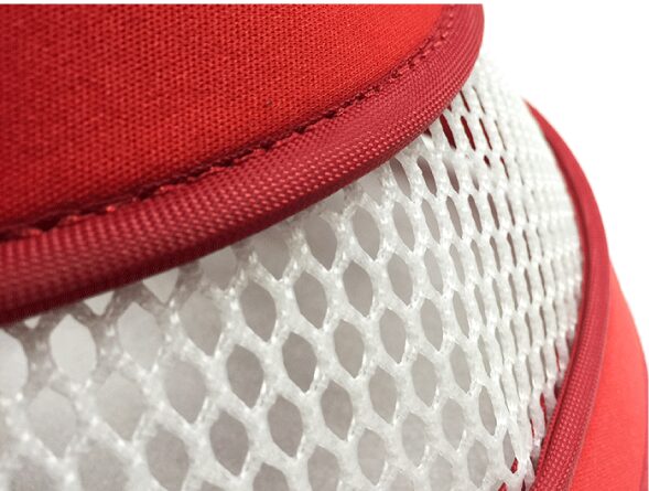 中間部份以透氣網製成,既通風亦無阻視線,同時減少頭罩內的回音。