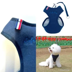 夜間安全設計:胸背帶與牽繩均附有「蓄光反光片」,能吸光並在黑暗中發光,同時反射車燈等光源,增加夜間散步的可視性與安全性。